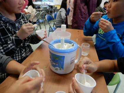 ついに完成しました。試食。あまりの美味しさに、みんな笑顔に。