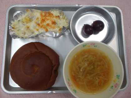 今日のグラタンに入っている くり・里芋・れんこん・ブロッコリー・しめじ は秋が旬の食べ物です。秋満載のグラタンを味わって食べてください。