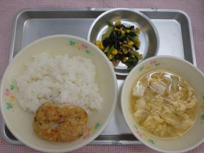 今日のみそしるには、卵が入っています。いろいろな料理に使われる卵は、古くから食べられていました。西ヨーロッパでは、ギリシャ時代の料理にも使われていたようです。日本では、安土桃山時代にカステラが伝わった時、その材料として使うようになりましたが、家庭の食卓にのぼったのは明治時代になってからのようです。卵は体を作るたんぱく質や鉄分が多く含まれていて、1日1個食べると良いといわれています。