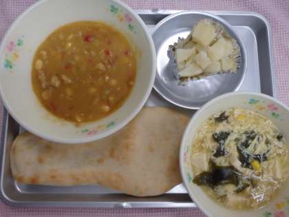 ナンは2年3組・6年1組のリクエストです。じゃがバターは6年3組のリクエストです。