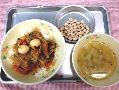 11月9日の給食 公開日 2017/11/10 更新日 2017/11/10 今日の出来事 <こんだて> ちゅうかどんぶり かぶのスープ キャンディビーンズ ぎゅうにゅう 今月は『地産地消月間』です。『地産地消』とは、地元でとれたものやつくられたものを地元で消費することをいいます。給食でも、年間を通して地場野菜を取り入れるように努めています。今日の給食のにんじん・キャベツ・かぶは、八王子でとれたものです。おいしく新鮮な地場野菜を味わって食べましょう。