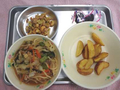 はちおうじラーメン(しょうゆラーメン)は1年1組・3年1組・3年2組・6年2組・6年3組のリクエスト、フライドポテトは1年3組・2年2組・3年2組のリクエストです。