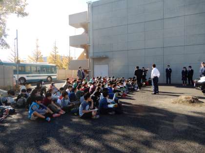 高尾警察署に見学に来ました。今、注目の警察署です。記念撮影の後、2グループに分かれて見学です。