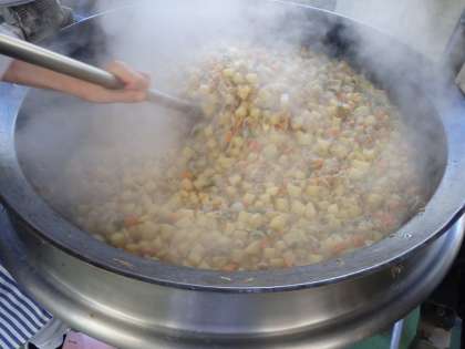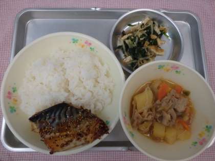 韓国では、ねぎ・にんにく・しょうが・唐辛子・ごま油などが体によいものとして、料理に多く使われます。辛みの強い料理も韓国料理の特徴です。今日の肉じゃがは、ねぎやにんにく・ごま油で香りをだし、トウバンジャンで辛みをつけました。トウバンジャンは唐辛子を使って作る調味料です。韓国風味を味わって食べてください。