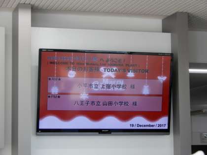 5年社会科見学5 公開日 2017/12/19 更新日 2017/12/19 今日の出来事 6つの小グループに分かれて、工場内の見学開始。企業秘密がたくさんあるので、撮影できません。目の前の組み立てラインの迫力に、みんな感激していました。右よし、左よし、前よし。