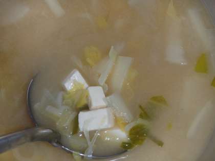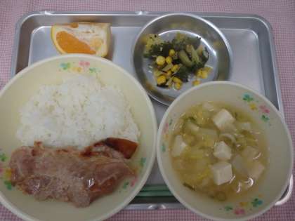 6年生が家庭の学習で1食分の献立を考えました。炭水化物・脂質・たんぱく質・無機質・ビタミンの5つの栄養素がそろうように工夫しました。今日の給食は6年生が考えた献立で、給食用に食材を少し追加・変更して作りました。みそしるには、考えてくれた、はくさい・ねぎ・豆腐の他に、だいこんもいれました。寒い日は温かい汁物がうれしいですね。栄養バランスよく考えた献立なので、残さず食べてください。