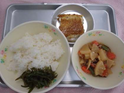 3月1日の給食 公開日 2018/03/01 更新日 2018/03/01 今日の出来事 <こんだて> ごはん とうふのでんがくやき だいこんのそぼろに くきわかめのしょうがいため ぎゅうにゅう 茎わかめは、名前の通り、わかめの茎の部分を細く切ったものです。わかめなどの海藻は「海の野菜」とも呼ばれ、海外でも注目されています。一度にたくさんの量を食べるのは難しいので、毎日少しずつ食べるといいですね。