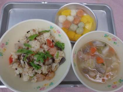 明日3月3日はひな祭りです。女の子の健やかな成長と幸せを願ってお祝いする行事で「桃の節句」とも呼ばれます。ちらしずしは、春らしい鮮やかな彩りが女の子の節句にピッタリの料理です。ちらしずしに入っているえびには長生きできますように、れんこんには先が見通せますように、という願いが込められています。ひなまつりしらたまは、白・赤・緑の3色の白玉をつくりました。