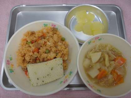 4月23日の給食 公開日 2018/04/25 更新日 2018/04/25 今日の出来事 <こんだて> チキンライス いかのハーブやき やさいのスープに くだもの ぎゅうにゅう イカは世界中の海に450種類いるといわれています。25ミリメートルの小さいなものから15メートル以上もある大きなものまで、いろいろな種類のイカがいます。その中で食べられるイカは30種類ほどだそうです。イカは歯ごたえがあり、かんでいるとうま味を感じます。よくかんでしっかり食べましょう。