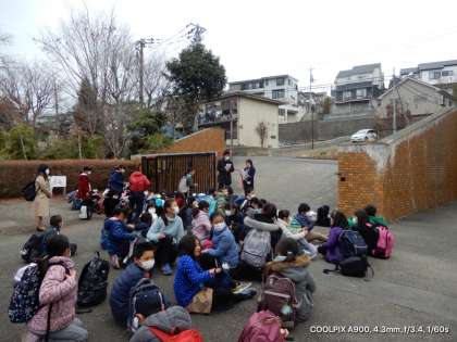 4年生の社会科見学に出発します。空は曇り。なんとかもってほしい。