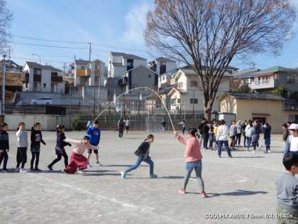 長なわ跳び 公開日 2019/02/22 更新日 2019/02/22 今日の出来事 今日もいい天気です。休み時間になると、長なわ跳びの練習に励む学級が多くあります。新記録めざして、みんなで声を掛け合って運動しています。