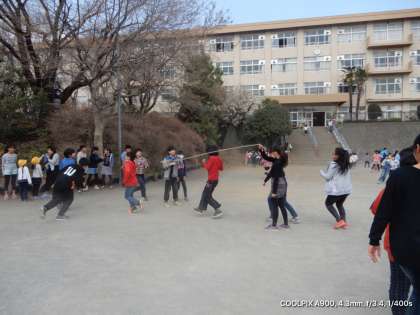 今日の昼休み。明後日の「長なわとび集会」へ向けて、各学級の練習にも熱が入ってきました。