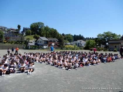 5月の避難訓練を行いました。想定は地震です。放送の合図で、素早く机の下に体を入れて、頭を守る姿勢をとりました。その後、おさない、かけない、しゃべらない、もどらない、の約束を守って、校庭に避難しました。全員が集合するまでに、約7分かかりました。1年生は、今回が初めての避難訓練でした。毎月1回、想定を変えて行っていきます。