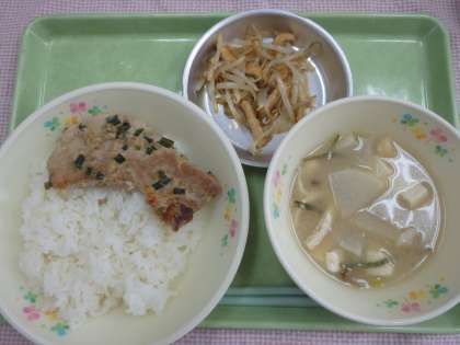 明日はいよいよ運動会ですね。今日は早く寝て、明日早く起き、朝ごはんをしっかり食べて今まで練習してきたことを精いっぱい出し切れるように頑張りましょう。給食室でも、スタミナをつける豚肉のスタミナ焼きをつくって、応援しています!