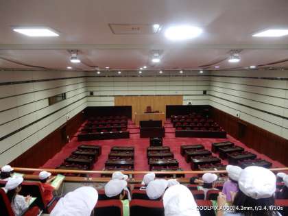 市役所を見て回りました。市議会の議場を、傍聴席から見学しました。みんなよく観て聴いて、メモをとりました。