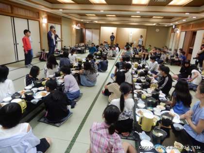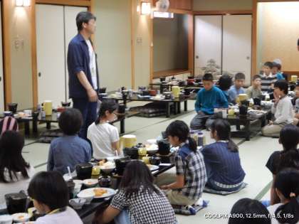 夕食の時間です。みんなでそろって、いただきます。
