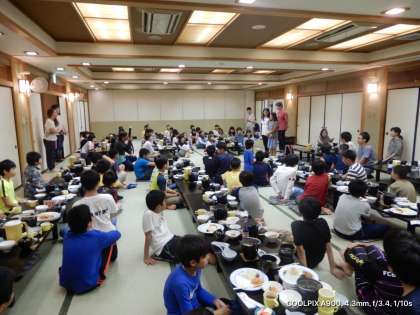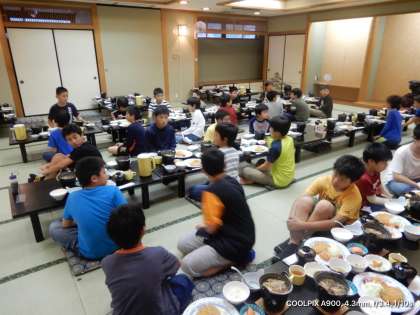 2日目の夕食。おいしかったの声が出るほど、みんなよく食べました。メニューには、ゆばもありました。