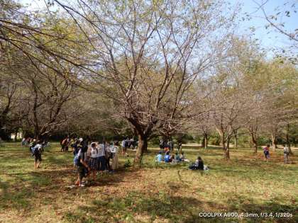 しっかりと学んだ後は、さくら公園で昼食です。さくらの花の時期ではありませんが、彼岸花が群生していました。