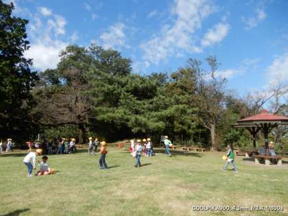 食後は、秋探しと芝生広場で運動です。