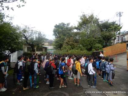 4年生の警察署見学。高尾警察署まで2列で歩いて行きました。
