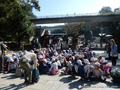 多摩動物公園に到着。他の学校も大勢の来ています。