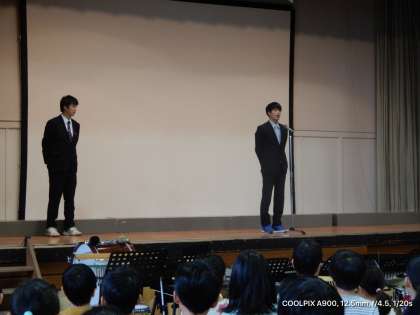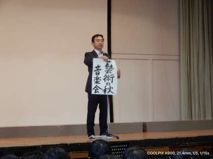 全校朝会 公開日 2019/11/11 更新日 2019/11/11 今日の出来事 今朝は、藝術の秋の話でした。今週末の音楽会へ向けて、みんな一生懸命練習しています。美しい演奏ができるよう、がんばってほしいです。教育実習生が終わりの挨拶をしました。