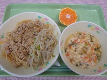 東京オリンピック・パラリンピック競技大会に向けて、世界の料理や食文化の紹介です。今日は、中国の首都、北京です。北京は中国の北側にあるため、お米や魚よりも、小麦粉を使った料理が多いです。ジャージャー麺は豚のひき肉とたけのこやしいたけなどをみそで炒めた肉みそを作り、麺にのせて食べる料理です。サンラータンは、酢の酸味と、こしょうや唐辛子の辛みのきいたスープです。世界の食文化にふれ、おいしく食べながら学びましょう。