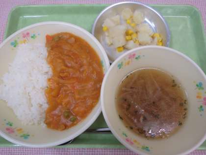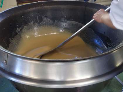 今日は児童に人気のあるハヤシライスでした。調理室ではルーから手作りでつくっています。ルーの材料は小麦粉とバター、サラダ油の3つのみです。手作りのルーは余計なものが入っておらず、風味豊かです。給食のハヤシライスのおいしさの秘密でもありますね。