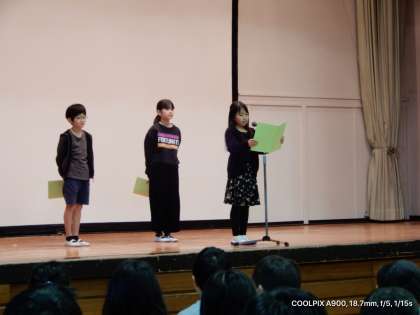 3学期の始まり 公開日 2020/01/08 更新日 2020/01/08 今日の出来事 始業式がありました。全校児童、全員が勢揃いしました。令和2年、2020年の始まりです。張り切っていきましょう。春の七草の話、4年生の言葉、校歌斉唱をしました。