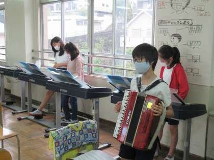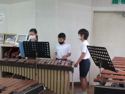 BTSの楽曲「ダイナマイト」の合奏練習を頑張っています。