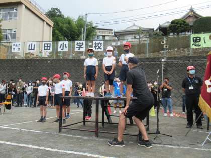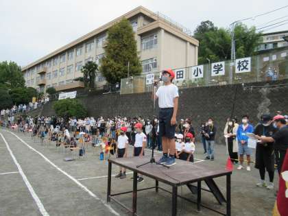 1年生の児童代表の言葉、とてもかわいかったです。代表委員会の6年生がスローガンを発表しました。さすが6年生、バッチリでした。