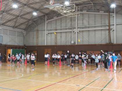 運動委員会が5・6年生向けにソフトボール投げの練習の場を用意してくれました。