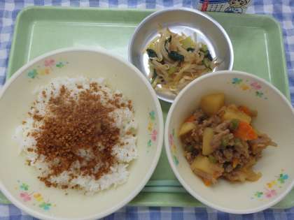 6月10日の給食 公開日 2022/06/13 更新日 2022/06/13 給食室より <こんだて> ごはん アーモンドふりかけ かんこくふうにくじゃが もやしのからしあえ ぎゅうにゅう 今日はにんにくや長ねぎ、ごま油、ごま、トウバンジャンなどを使い、韓国風にした肉じゃがを作りました。普通の肉じゃがよりも好き!という声もあり、大人気でした。
