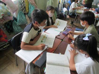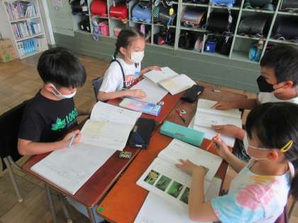 文章全体を「はじめ」「中」「おわり」のまとまりに分けました。