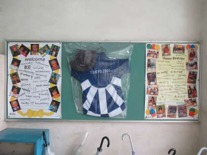 東京オリンピックで使われたユニフォームを東昇降口に掲示しました。