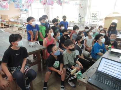 ボディペインティングをした授業の振り返りをしました。