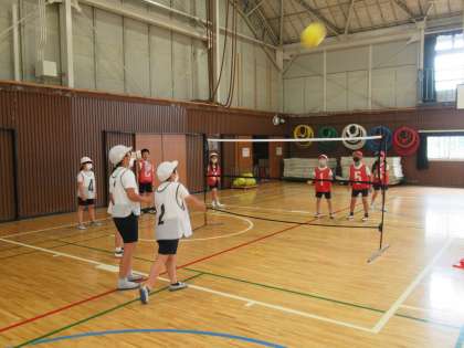 キャッチバレーのゲームを楽しみました。