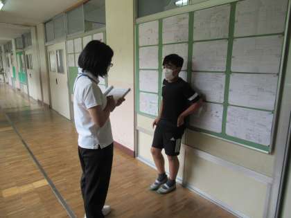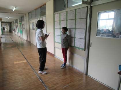 5年生 外国語 公開日 2022/06/21 更新日 2022/06/21 今日の出来事 1人ずつ廊下でパフォーマンステストをしました。パフォーマンステストは学習したフレーズを用いて短い会話を行い、スピーキングスキルを確認するものです。