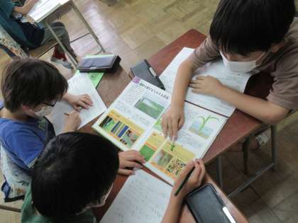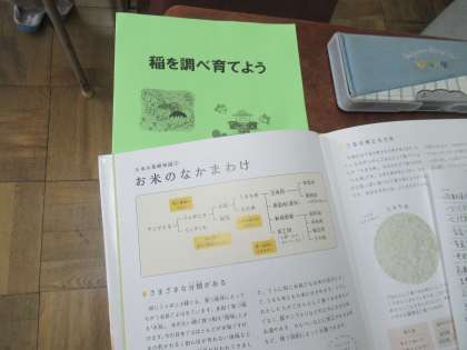 「稲を調べ育てよう」の単元です。インターネットや図書資料を使って調べる活動をしています。