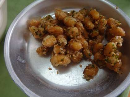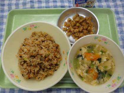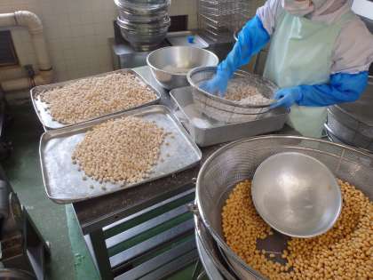 箸を正しく持ち、動かして、大豆の揚げ煮の豆を上手につまんで食べました。