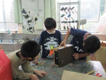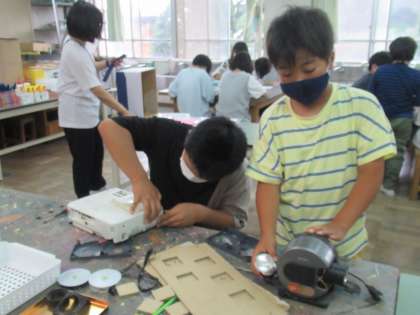 イラスト・工作クラブです。機械の分解に挑戦中です。