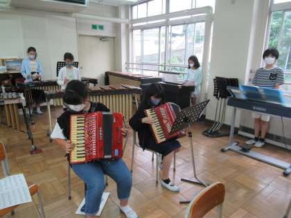 アウトドアゲームクラブは「モルック」を楽しんでいました。ミュージッククラブは合奏の練習をしていました。