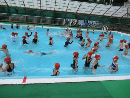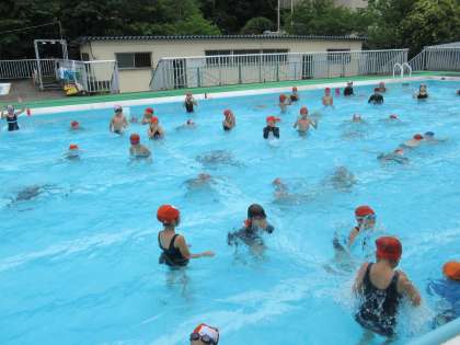 いつもより少し水が冷たかったようです。水に慣れる活動を楽しみました。