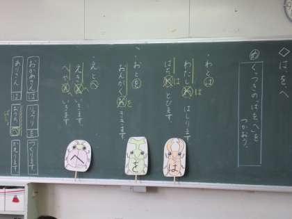 ひらがなの学習が終わり、「を」「は」「へ」など助詞の学習が始まりました。