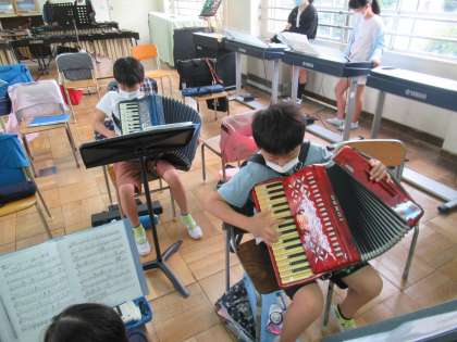 昨日まで移動教室だった5年生は3校時からのスタートでした。合奏「剣の舞」の練習をしました。