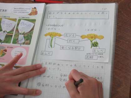 「花から実へ」の単元です。花粉のはたらきについて学習しました。