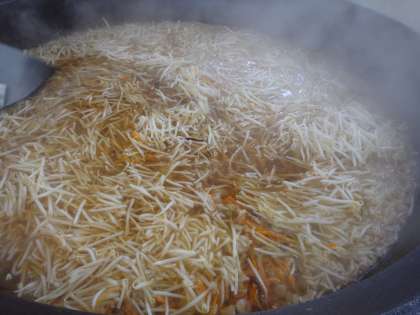 シャキッとした歯ごたえが特徴的なもやしには水分が多く含まれています。弱々しい見た目から、栄養がほとんどないと思われがちですが、実は栄養価の高い野菜です。疲れをとるビタミンB₁をはじめ、皮膚の粘膜をまもるビタミンB₂、風邪を予防するビタミンC、おなかのそうじをする食物せんいなどが含まれています。加熱すると失われてしまう栄養もあるので、今日のようにスープに入れて、汁ごと飲むのがおすすめです。