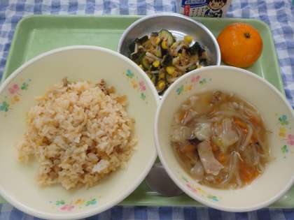 今日は好評のキムタクごはんでした。名前がユニークなので、事前にチェックしていた人が多かったようですが、味も気に入ってもらえたようです。