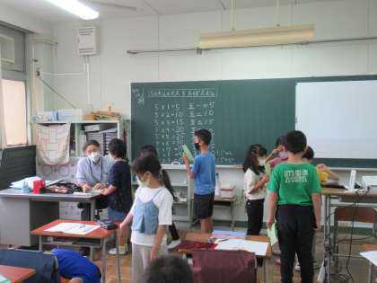 かけ算九九の練習が始まりました。5の段を覚え、唱えました。