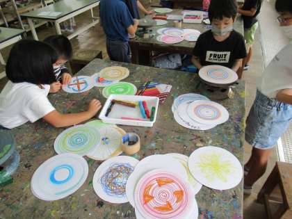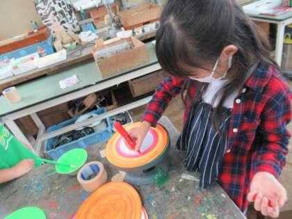 「手回し ろくろ」でフリスビーの下絵を描きました。